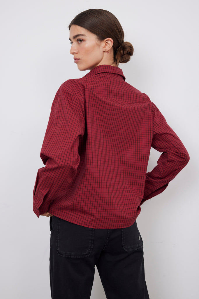Camisa Colección Bad Habits. Camisa 100% algodón con estampado de cuadro negro sobre fondo rojo, ideal para un look casual con carácter.
