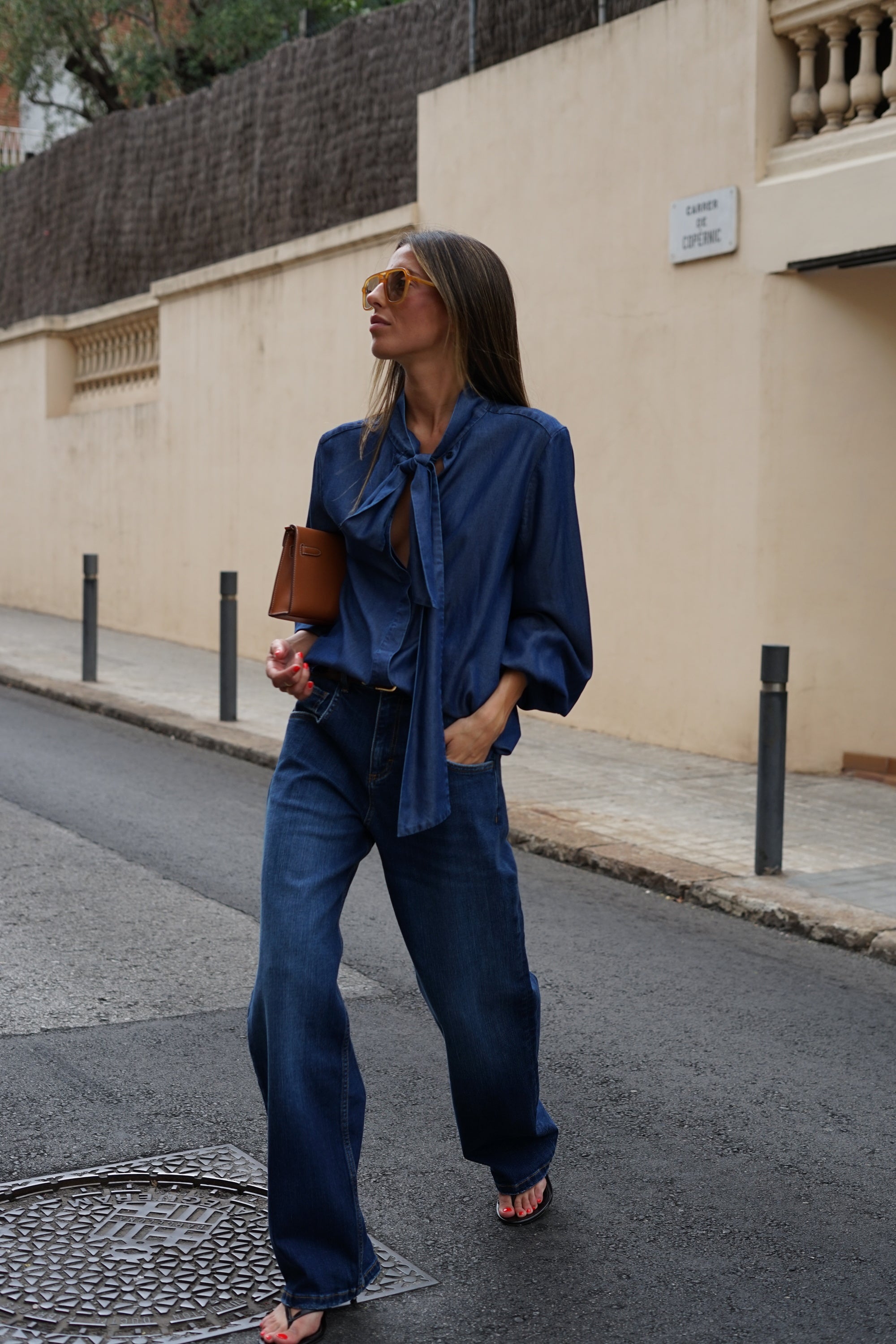 Blusa Colección Bad Habits. Blusa de tejido fluido con lazada en el cuello, confeccionada en poliéster reciclado, perfecta para un look elegante y consciente.