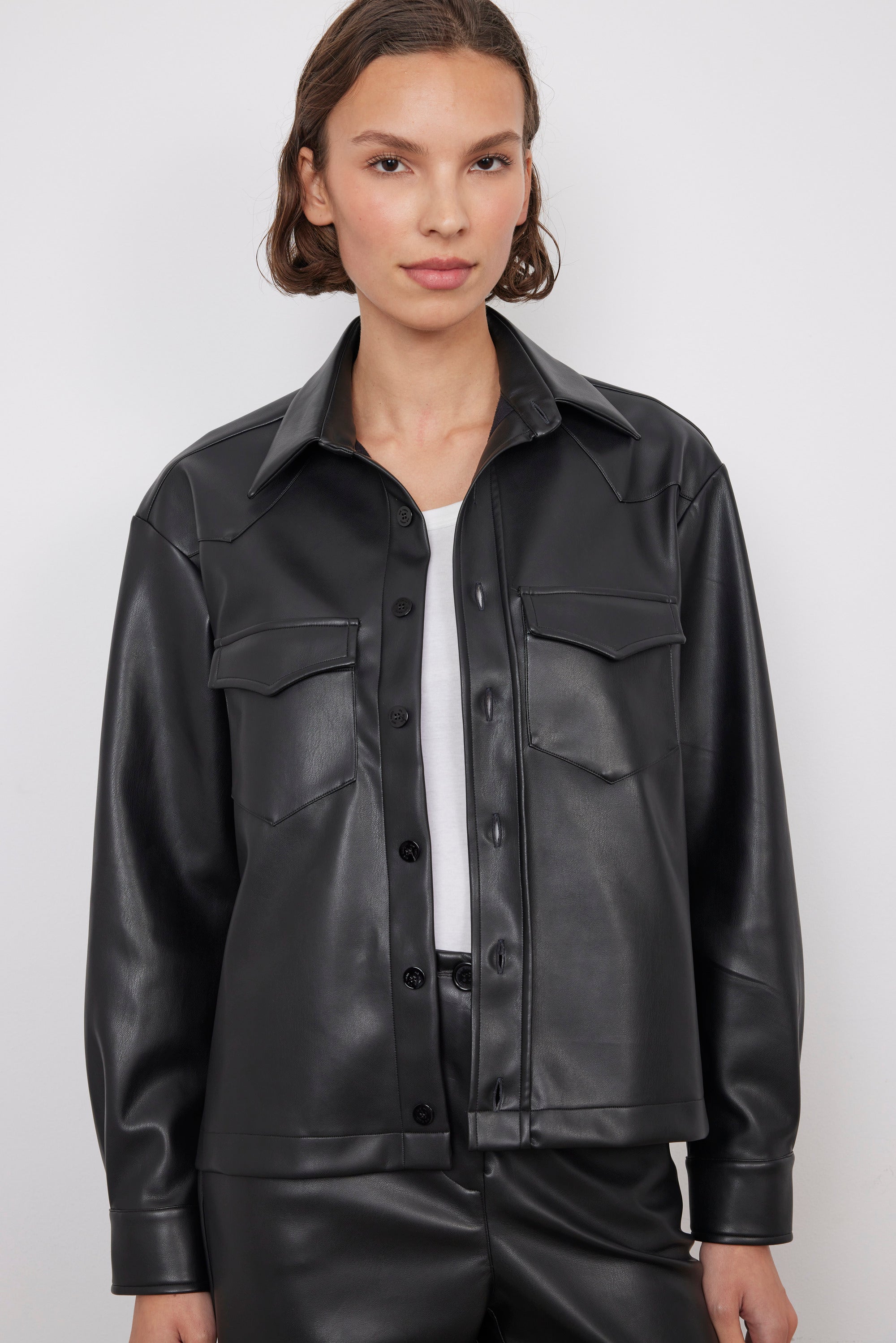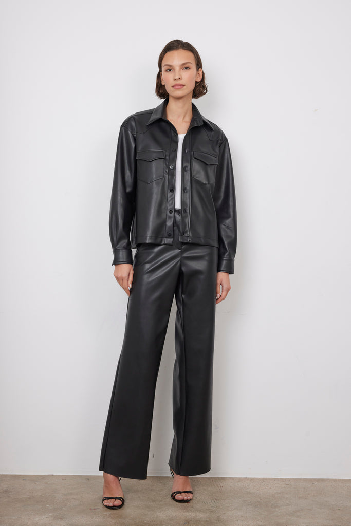 Camisa Colección Bad Habits. Camisa de piel vegana con cuello camisero, manga larga, botones a tono y bolsillos frontales, ideal para un look sofisticado con actitud.