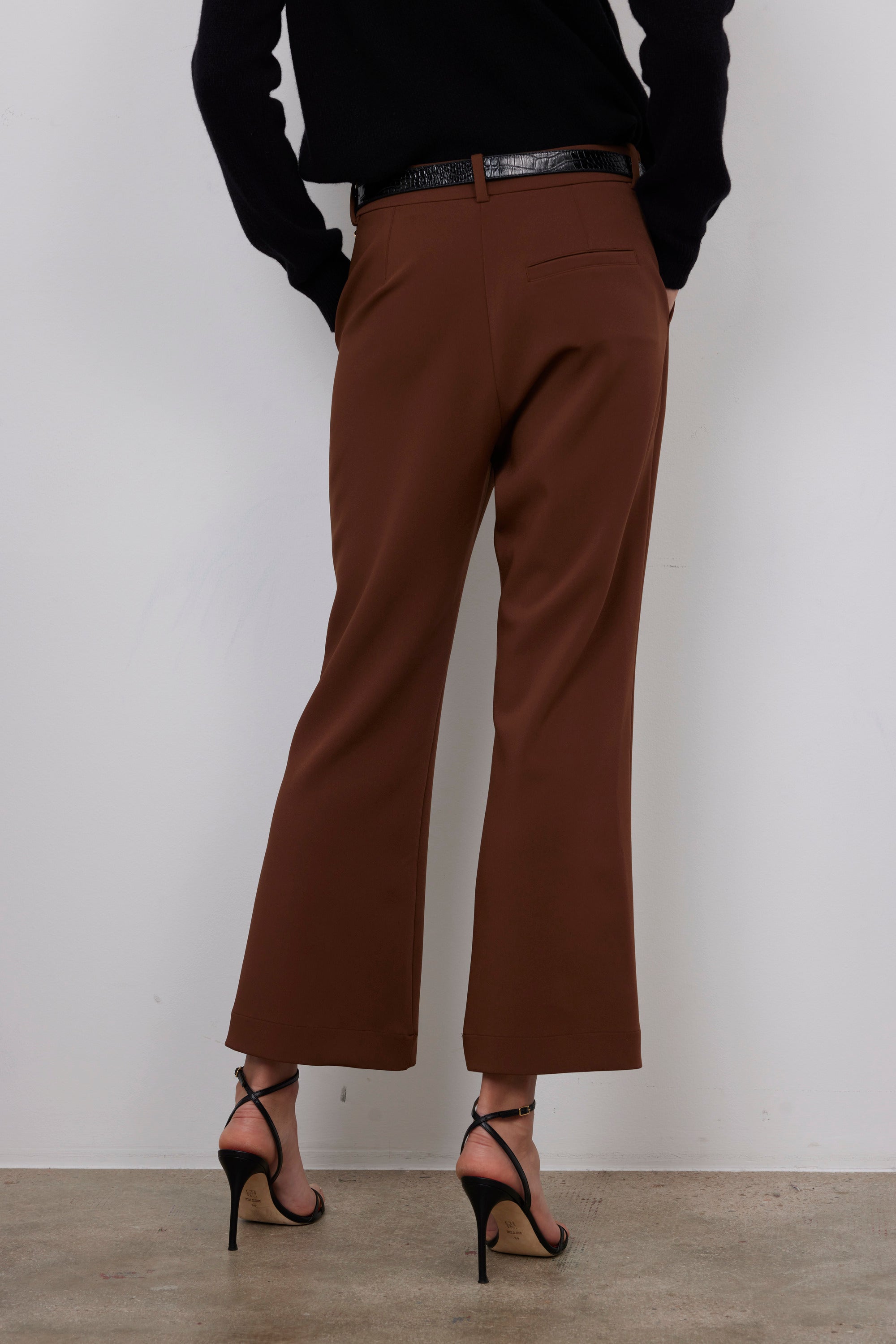 Pantalón Colección Bad Habits. Pantalón de tiro alto con corte slim y forma acampanada tipo flare o bootcut, que estiliza la silueta con un toque moderno.