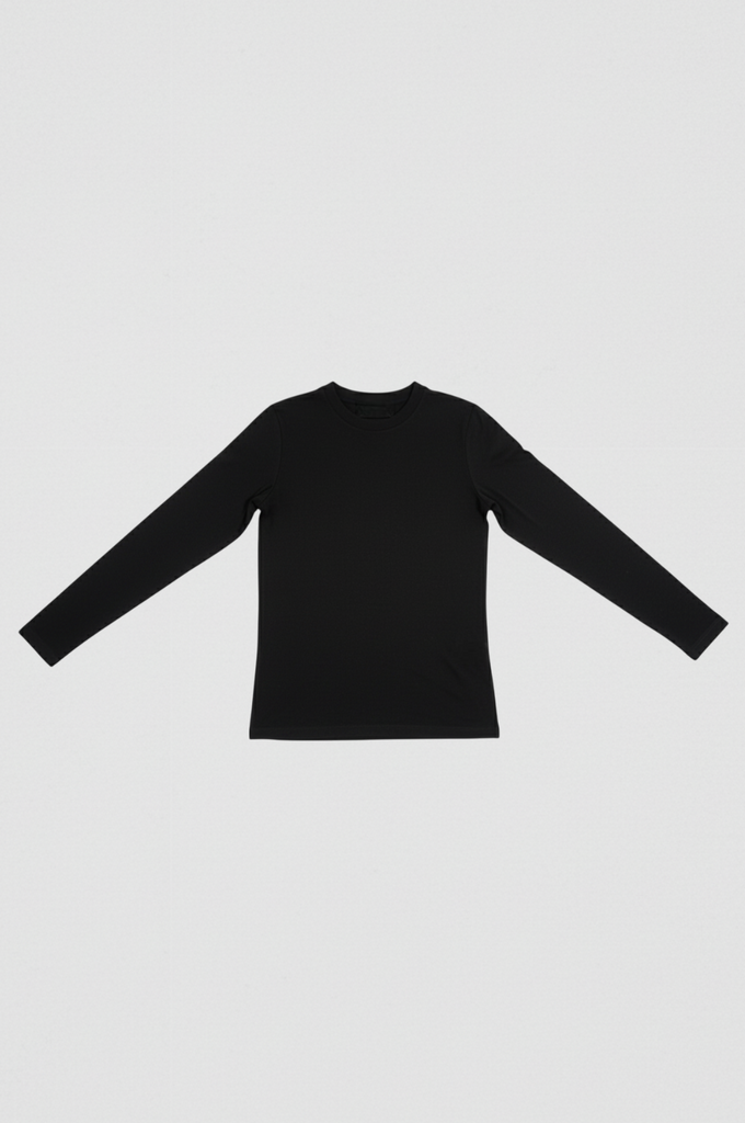 Camiseta semitransparente de manga larga negra. Tejido de modal con elastano.