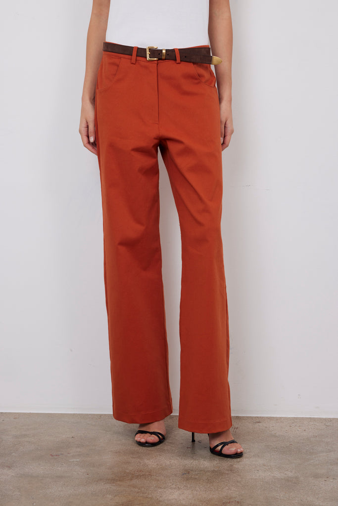 Pantalón Colección Bad Habits. Pantalón largo de tiro alto confeccionado en algodón elástico, pensado para ofrecer comodidad y ajuste con un diseño limpio y versátil.