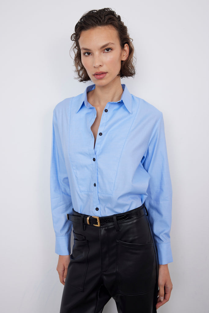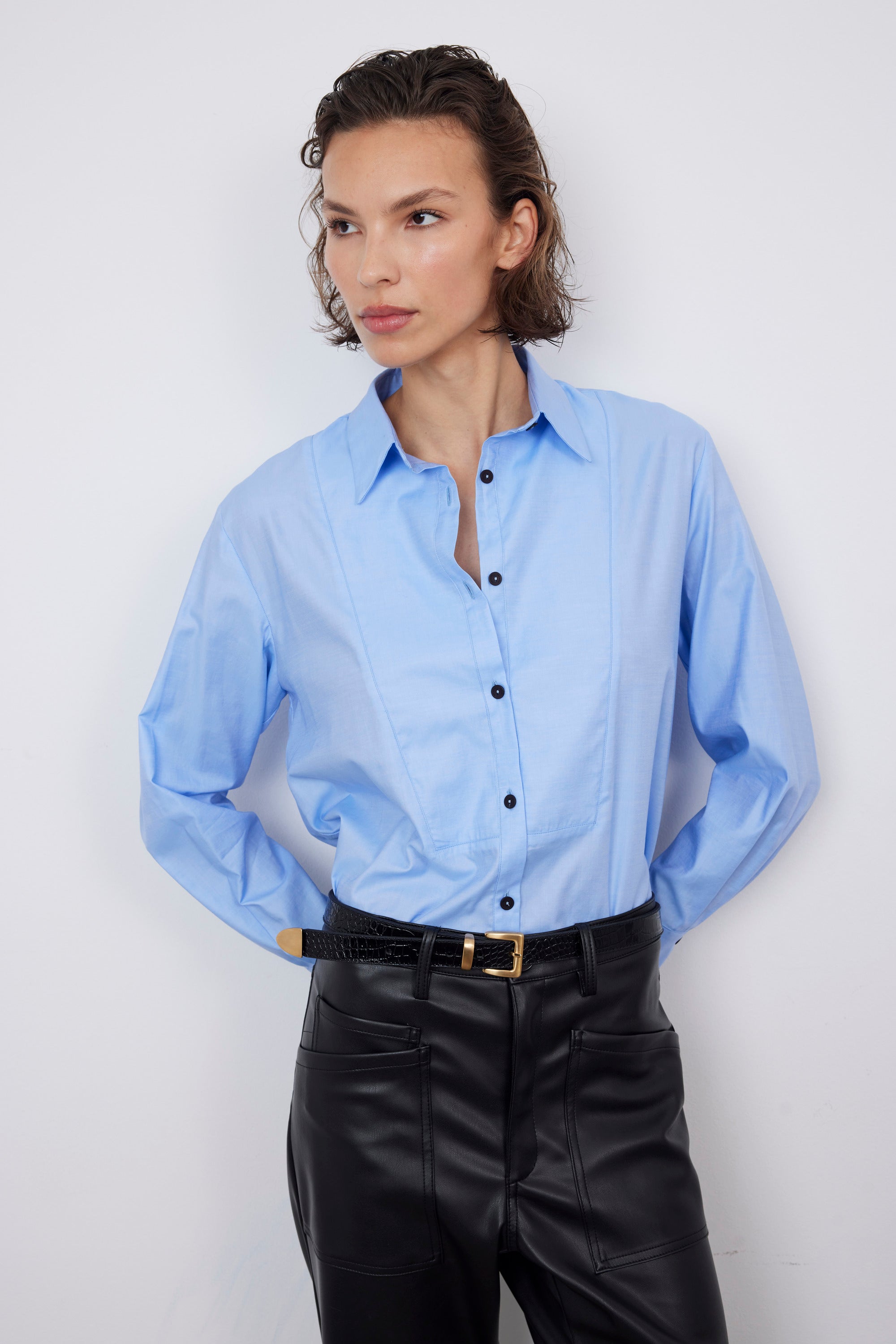 Camisa Colección Bad Habits. Camisa de manga mezcla algodón de corte recto con detalle de pechera en el frontal y botones a tono.