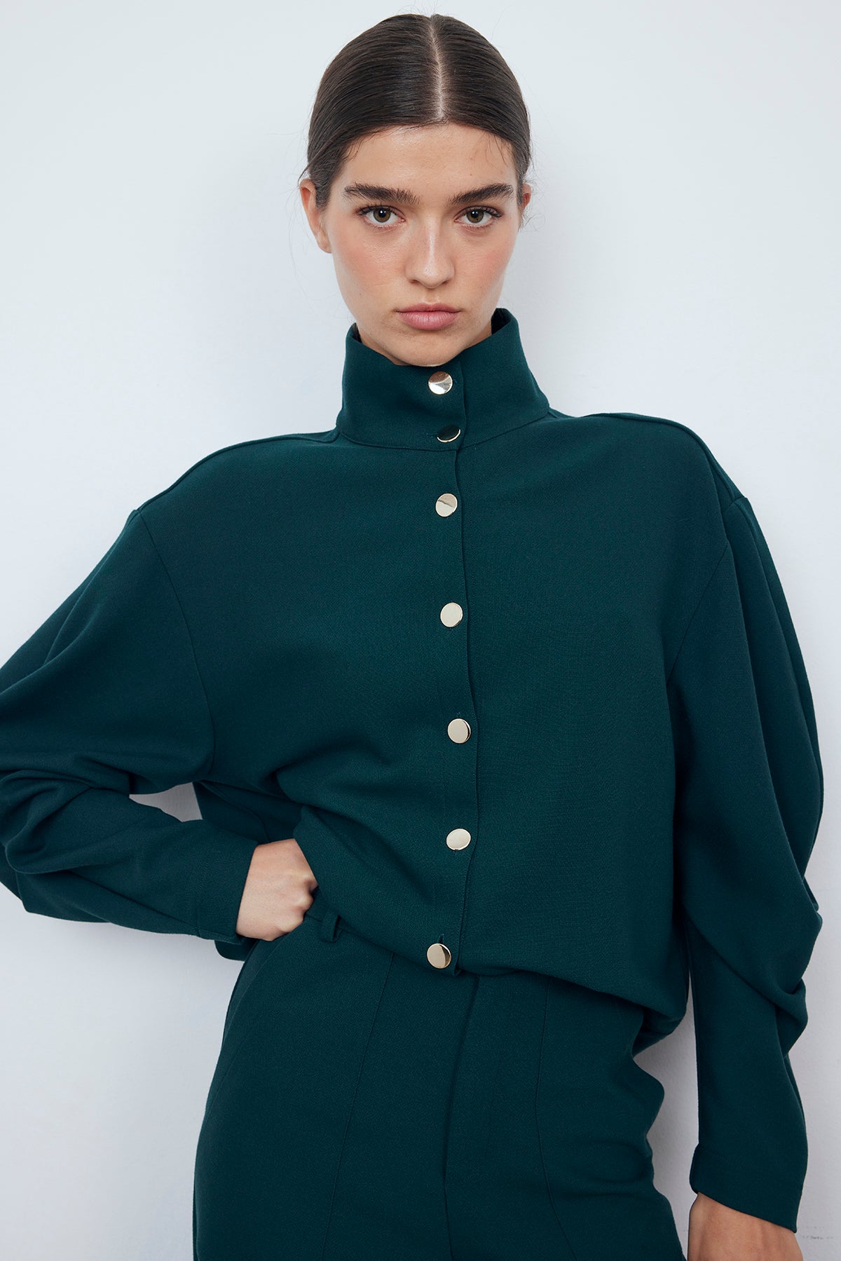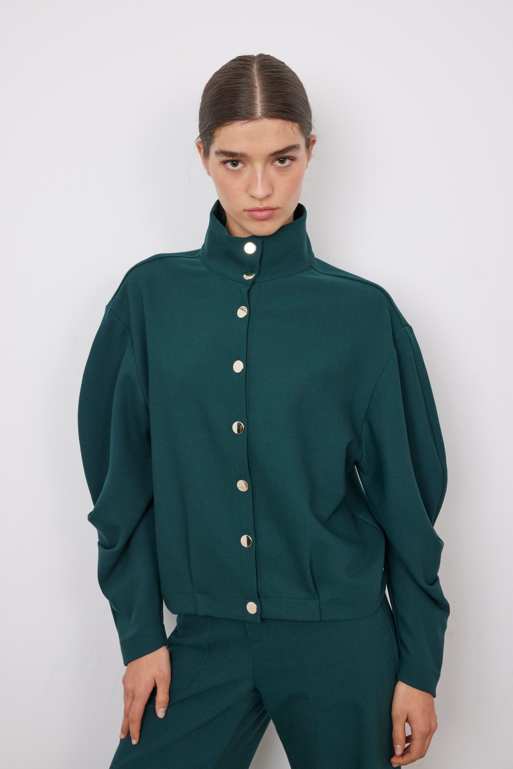 Chaqueta Colección Bad Habits. Chaqueta de manga larga snaps hasta el cuello con manga fruncida. Posibilidad de vestirlo como una camiseta/top o como chaqueta.