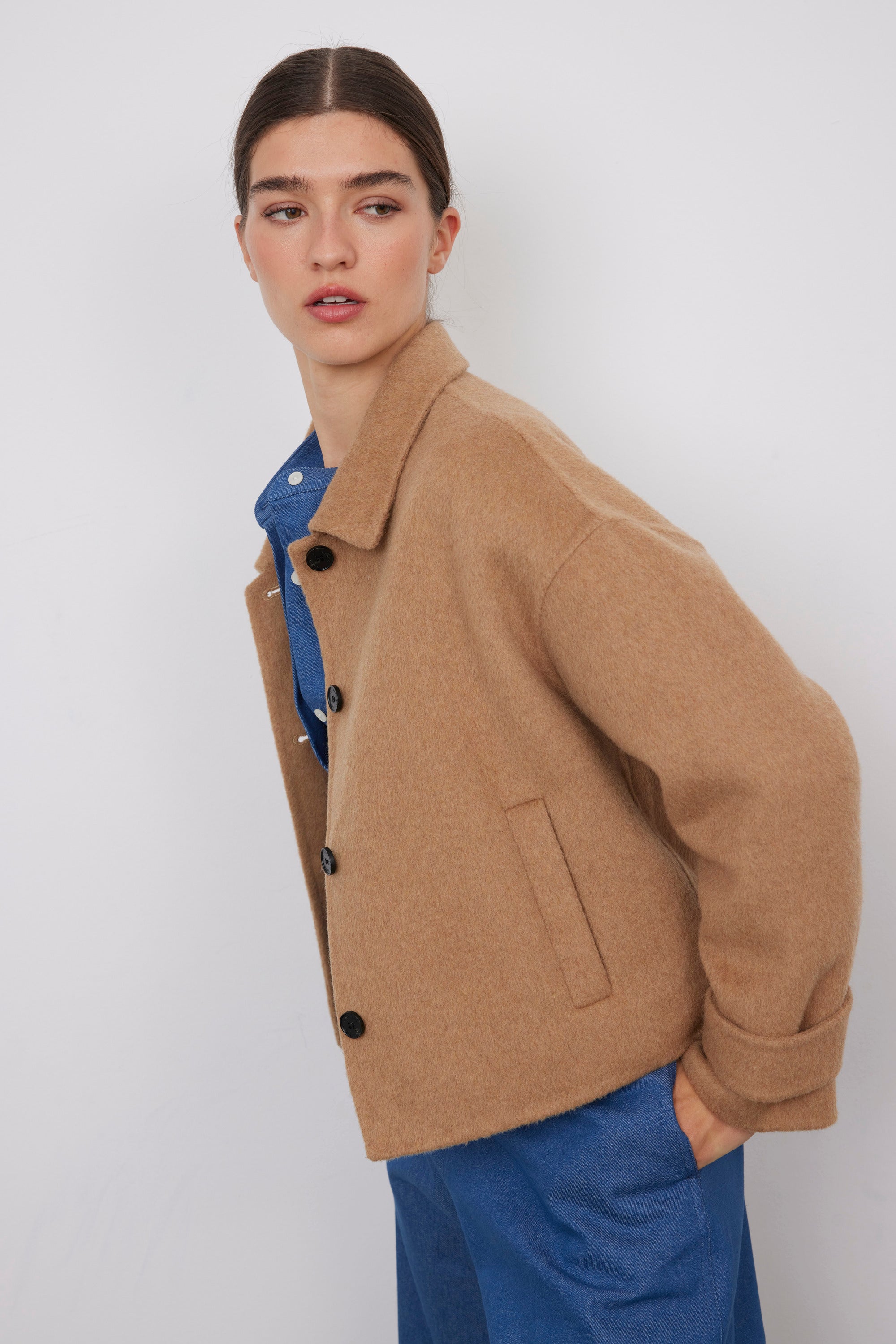 • Tejido : 50% Lana, 50% Poliéster. Contraste: 50% Poliuretano, 50% Poliéster. Forro: 100% Poliéster.