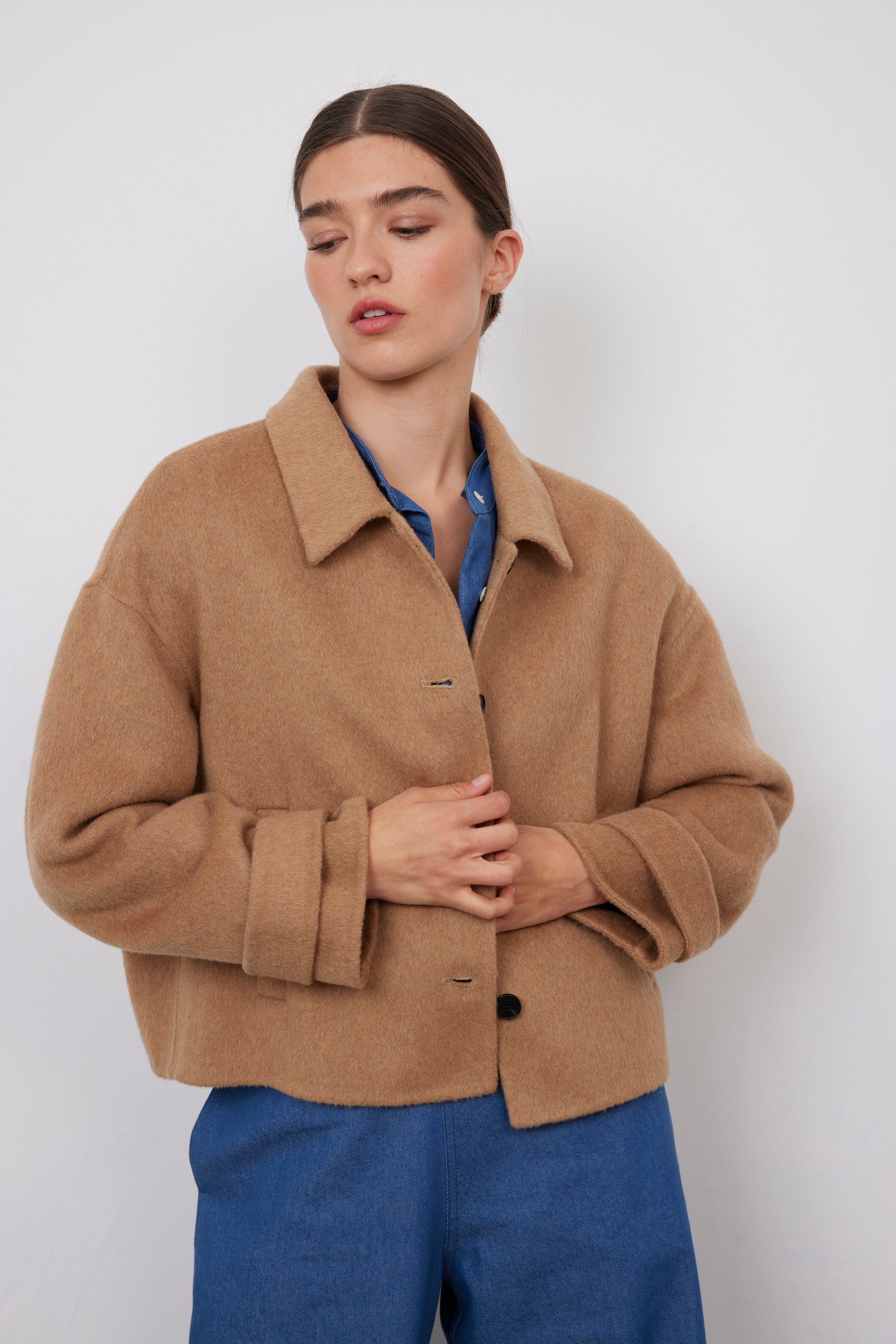 Abrigo Colección Bad Habits. Abrigo en mezcla de lana con interior cálido y cuello forrado en polipiel, ideal para un estilo robusto y sofisticado.