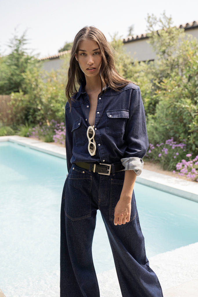 Jeans Colección Bad Habits. Jeans de tiro alto con pernera efecto “globo”, confeccionados en tejido 100% algodón, para un look moderno con estructura y comodidad.