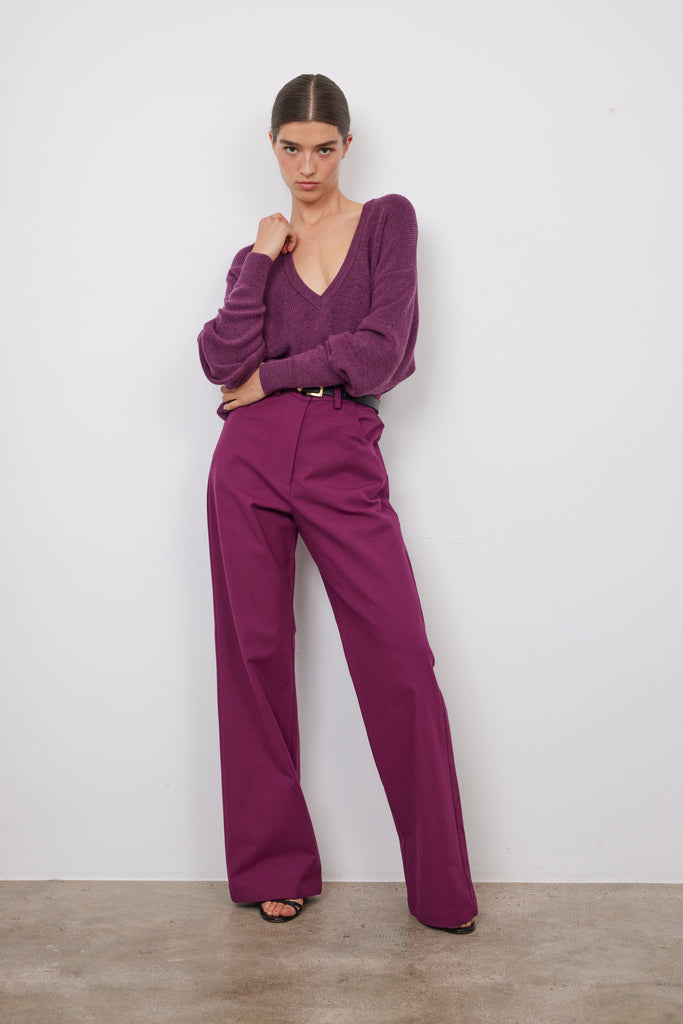 Pantalón Colección Bad Habits. Pantalón largo de tiro alto confeccionado en algodón elástico, pensado para ofrecer comodidad y ajuste con un diseño limpio y versátil.